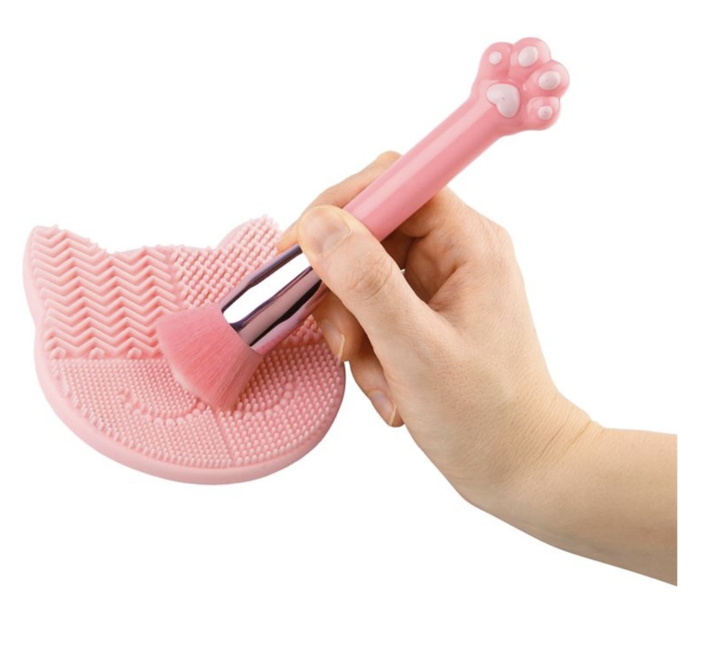 Beauty set iz Top Modela uključuje ružičasti kist za šminkanje s mačjom šapom na kraju drške i u ružičastim i bijelim dlačicama četkice, kao i ružičasti jastučić za čišćenje u obliku mačje glave s izbočinama i utori za čišćenje četke. Praktično: vakuumske čašice na stražnjoj strani sprječavaju klizanje jastučića za čišćenje!