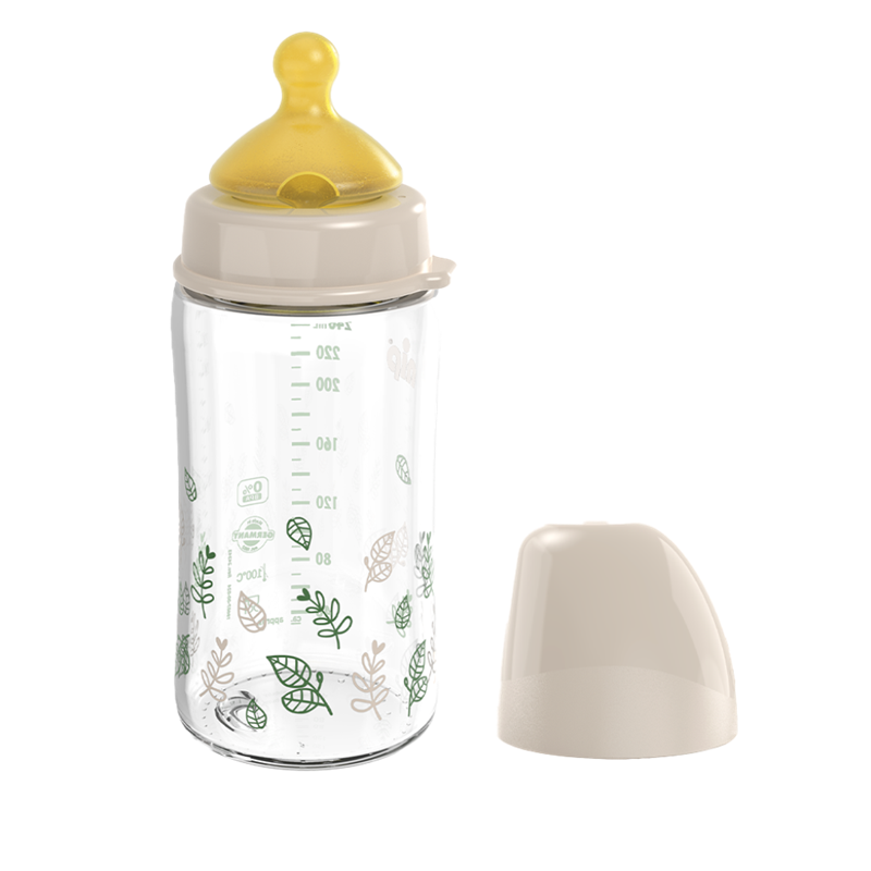 Nip Cherry green staklena bočica sa okruglim sisačem od kaučuka. • Održivo: plastični dijelovi boce izrađeni od certificirane održive plastike; • Okrugli sisač prirodnog oblika, slična majčinim grudima; • Duda napravljena od mekog prirodnog lateksa-kaučuka za prirodan osjećaj dojenja. Ne ometa dojenje, te je breast feeding friendly; • Izdržljiva: staklena boca je posebno čvrsta, prozirna i bez mirisa; • Otvor protiv kolika sprječava gutanje zraka i time sprječava grčeve; • Ekstra širok oslonac za usne stvara ugodan osjećaj pijenja; o Duda veličine S za spor protok; • Easy2clean - jednostavno punjenje i čišćenje; • Vijčani prsten s praktičnim pomoćnikom sa strane za jednostavno otvaranje i zatvaranje; Nip® staklena bočica širokog grla ima okruglu dudu od kaučuka s otvorom protiv kolika. Okrugli oblik dude širokog grla sličan je majčinim grudima i stoga osigurava prirodan osjećaj pijenja. Anti-Colic otvor sprječava gutanje zraka i tako sprječava kolike. Široki naslon za usne također osigurava ugodan osjećaj dojenja. Plastični dijelovi nip® boce sa širokim grlom, izrađeni su od certificirane održive plastike. Sama staklena boca je apsolutno postojana. Posebno je čvrsta, bistra i bez mirisa. Boca od 240mL dolazi sa dudom veličine M, za srednji protok. Zasebno dostupna za kupnju nije samo duda u veličini M, već također u veličini S sa sporim protokom. Obje, S i M duda, prikladni su od rođenja. Pojedini dijelovi boce sa širokim grlom mogu se brzo odvojiti i tako lako očistiti. Dodatni disk za zatvaranje otvora boce se sigurno zatvara za mućkanje bez prskanja i transport bez kapanja. Kao jamac stalne kvalitete nip® staklena boca sa širokim grlom ne sadrži BPA i dizajnirana je i prozvedena u Njemačkoj, te se Nip posebno ponosi krilaticom "Made in Germany". Sukladana je s normom EN 14350 i testirana je u neovisnim laboratorijima.