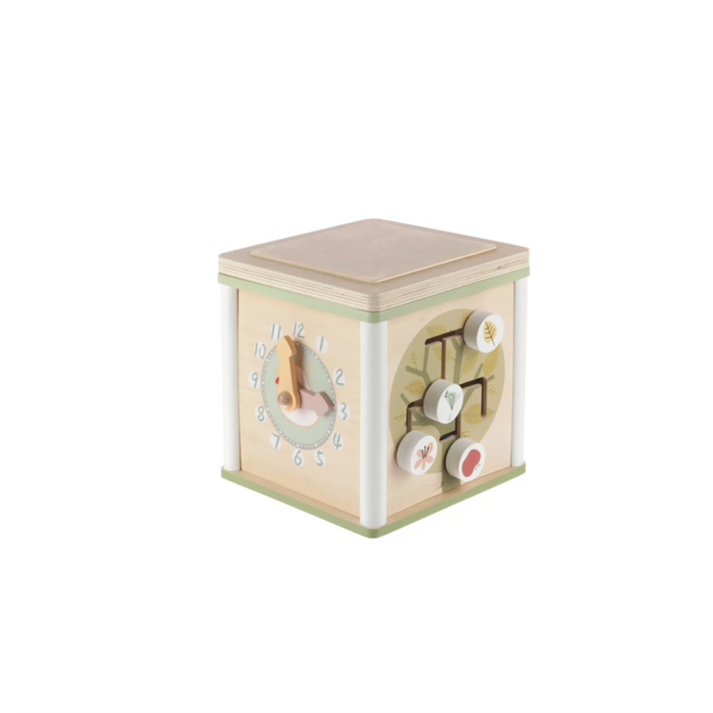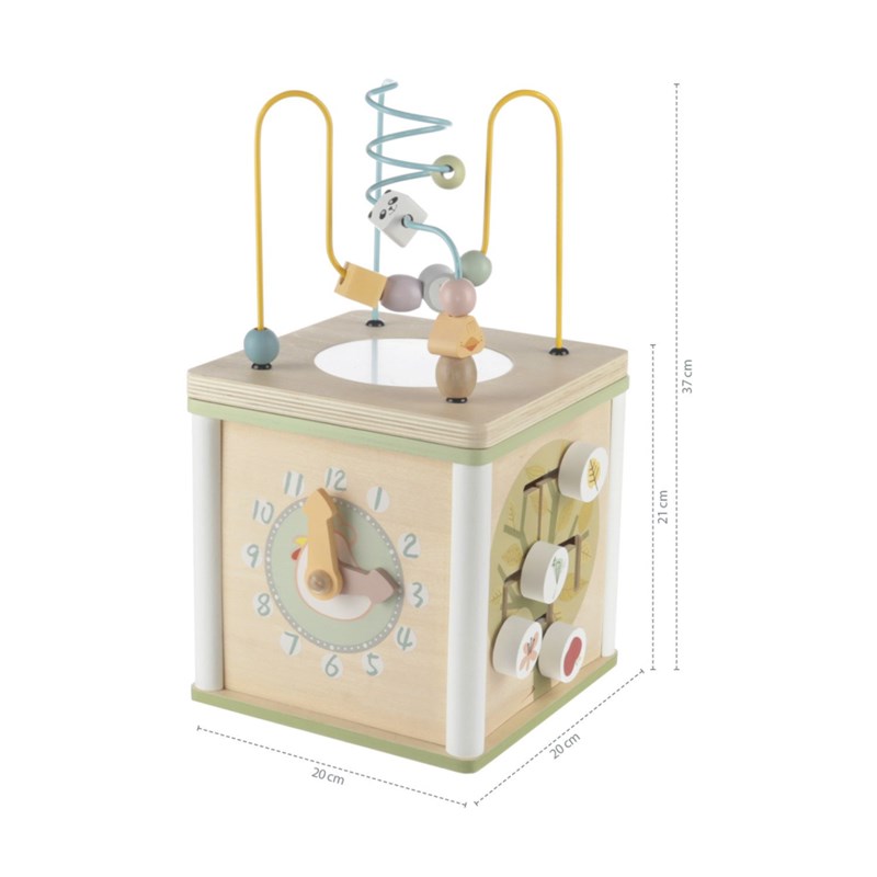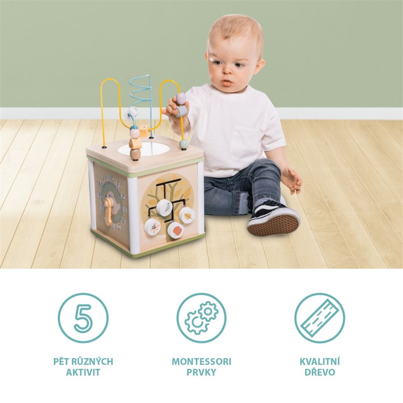 Kompaktne dimenzije, slagalica skrivena u kocki, visokokvalitetno drvo, boje na bazi vode, zaokupit će vas dugo - ovo je drvena kocka za aktivnosti. Za znatiželjnu djecu Slatka kocka koja u sebi krije slagalice. Na stranama kocke su rotirajući drveni oblici s različitim motivima. Igračka razvija koordinaciju, prostornu maštu i spretnost ruku. Pokretne lopte i oblici također mogu naučiti djecu prvom brojanju i prepoznavanju boja. Aktivnosti su izrađene od kvalitetnog drva i boja na bazi vode. • Kocka sa slagalicom unutra • Kompaktne dimenzije • Dugo će vas zabavljati • Razvija motoriku, koordinaciju i prostornu imaginaciju • Izrađen od izdržljivog drva i boja na bazi vode