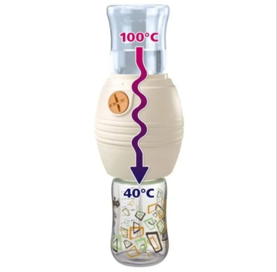 Hladi kipuću vodu do točnih temperatura od 40, 50, 60 do 70 °C u samo 80 sekundi, zavisno od Vaših potreba! • Radi samo na hladnu vodu, bez električne energije i bez baterija; • Jednostavan za korištenje i ne treba napajanje – idealno kada ste u pokretu; • Svi temperaturno osjetljivi sastojci u mlijeku u prahu su sačuvani; • Odgovara svim dječjim bočicama; Cool Twister radi samo s hladnom vodom i savršeno hladi kipuću vodu na temperaturu od 40, 50, 60 ili 70 °C u samo 80 sekundi. Voda teče kroz rashladnu spiralu gdje se hladi pomoću hladne vode u Cool Twisteru. Izuzetno brz i jednostavan za korištenje. Cool Twister vam omogućuje da pripremite dječju bočicu u samo jednom trenutku, tako da se beba može brzo nahraniti a svakodnevni stres je smanjen. Toplinski izolacijski silikonski prsten sprječava da se mjerna bočica previše zagrijava i omogućuje sigurno ulijevanje kipuće vode. Nip® Cool Twister odgovara za sve dječje bočice. Nip® Cool Twister je izuzetno dobar jednostavan za korištenje i ne zahtijeva električnu energiju. Mali spremnik za hlađenje je lagan, praktične veličine i idealno za spremanje u bilo kojem hladnjaku ili torbi za presvlačenje bebe. Cool Twister je siguran za hranu, mikrobiološki testiran, patentiran i TÜV testiran. Primalje preporučuju Cool Twister. Čuva probiotičke hranjive tvari Za razvoj vaše bebe bitno je da dobije sve važne hranjive tvari iz mliječne hrane u prahu. Cool Twister pouzdano hladi svježe prokuhanu vodu na temperaturu preporučenu za pripremu hrane. To je jedini način da osigurate da su sve probiotičke hranjive tvari zadržane i da se Vaša beba dobro hrani. Spremno za piće za samo 80 sekundi Ako je voda prevruća prilikom miješanja u mliječnu formulu, važne probiotičke hranjive tvari se uništavaju. Ako je prehladno, stvorit će se grudice jer se hrana neće dobro otopiti. Stručnjaci preporučuju da se za pripremu bočice, posebno za novorođenčad, uvijek koristi svježe prokuhana voda, a zatim da se ohladi. Mlijeko u prahu obično treba umiješati na 40°C.