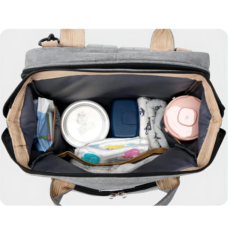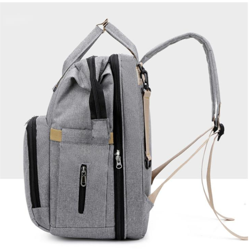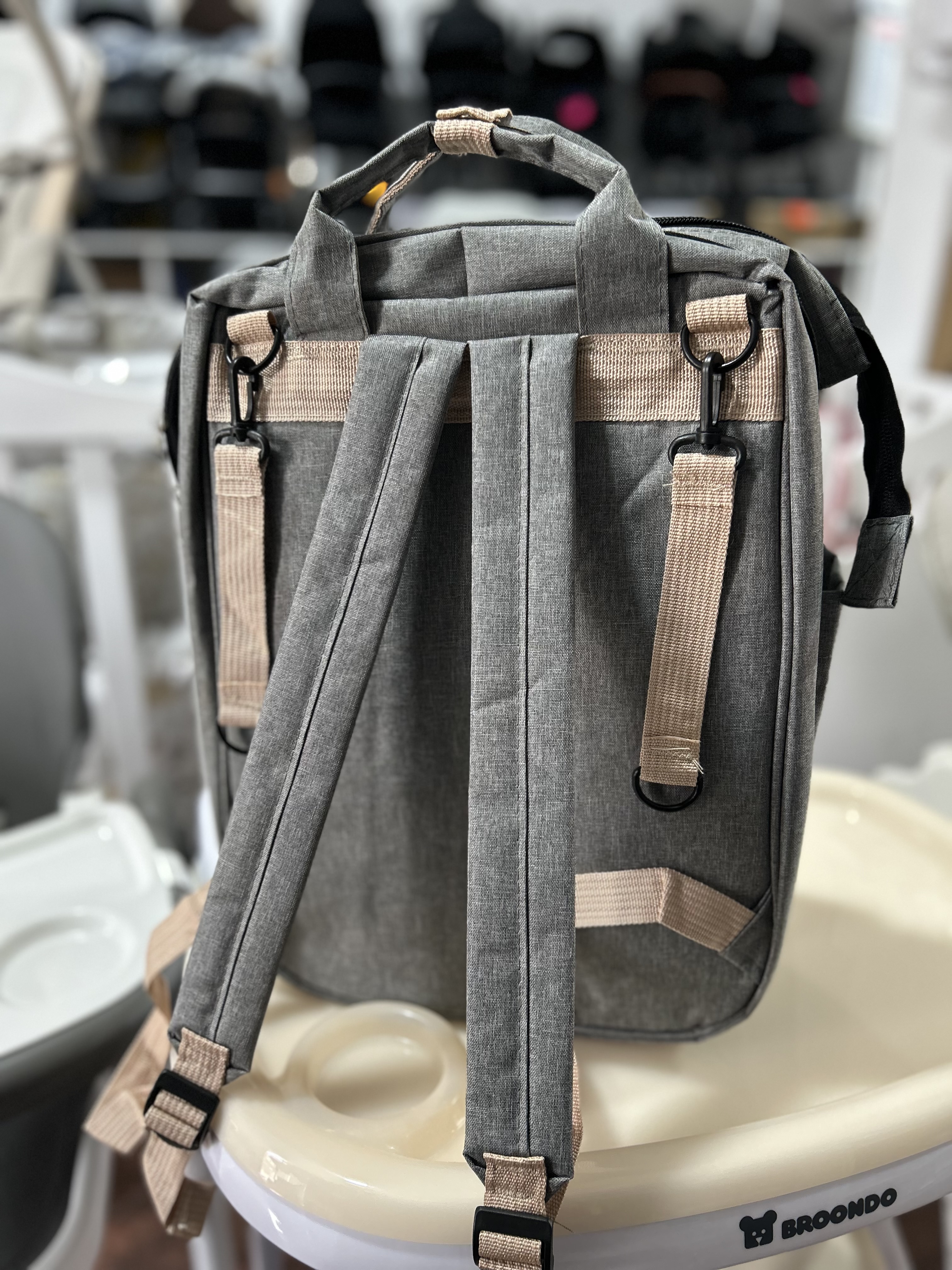Torba koja će Vam olakšati putovanja i izlaske sa Vašim mališanima. • Deluxe melange tkanina; • Prostirka za presvlačenje; • Kopče za jednostavno pričvršćivanje na kolica; • Veliki otvor za lak pristup predmetima i za lakse slaganje stvari; • Unutarnji džepovi za razvrstavanje stvari; • 3 vanjska džepova; • U prednjem džepu nalaze se 3 termo odjeljka za bočice koji satima održavaju temperaturu sadržaja bočice; • Prilagodljiva duljina naramenica; • Pogodno za korištenje i kao torba i kao ruksak, te kao putni krevetić; Rastvaranjem stražnjeg dijela torbe ista se proširuje u praktičan putni krevetić.