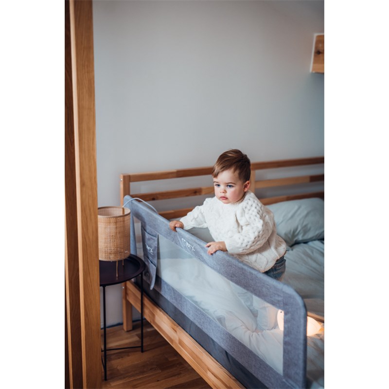 Vrpolji li se Vaše dijete noću i kreće li se po krevetu? I bojite li se da ne padnu? Znamo što osjećaš! Zato smo stvorili MoMi LEXI, najboljeg čuvara dječjeg sna! Proizvod za bebu koja drijema u roditeljskom krevetu i za starije dijete koje se tek preselilo u svoj "odrastao" krevet. MoMi LEXI ograda za krevet osigurava sigurnost djeteta pri spavanju, ali je udoban za korištenje i roditelju: – jednostavna montaža – ograda se može pričvrstiti vijcima na konstrukciju kreveta ili postaviti ispod madraca i pričvrstiti namjenskim trakama koje dolaze s kompletom. – apsolutno siguran za dijete – uspješno je prošao višestupanjsku provjeru i dobio certifikat SGS ispitnog laboratorija. – proizvod ispunjava i zahtjeve BS 7972. – štitnik MoMi LEXI ima sustav zaštite od spontanog sklapanja. – dolazi s trakama za postavljanje koje ojačavaju strukturu i osiguravaju stabilnost kada se dijete gura od ogradu. – ograda ima veliki džep s dvije komore, gdje možete pohraniti najkorisnije predmete, npr. pelene ili omiljenog medu. – dolazi s prozračnom mrežicom koja osigurava odgovarajuću cirkulaciju zraka. – kut otvaranja može se podesiti unutar raspona od 180°, kako biste lakše napustili krevet bez potrebe za uklanjanjem ogarde. Lako možete sami otvoriti vrata. – zaobljena, sigurna struktura, bez oštrih rubova. – tekstil je periv u perilici. – proizvod je namijenjen djeci od 18 mjeseci do 5 godina. – debljina madraca potrebna za postavljanje štitnika je 15 do 25 cm. MoMi LEXI ograda– kada je korisna? Ograda MoMi LEXI je univerzalan proizvod, savršen kako za mlađe tako i za starije dijete. 1. Voli li vaše dijete drijemati u spavaćoj sobi roditelja? Tamo se osjećaju sigurno i ugodno, ali visoki krevet može biti opasan za njih. Ovo je trenutak kada MoMi LEXI dolazi u pomoć! Postavite ogradu uz krevet i zaštitite svoje malo blago od nekontroliranog pada. 2. Vaše dijete više nije tako malo kao što mislite i želi spavati u krevetu za “odrasle”? Bojite li se donijeti odluku jer se brinete da bi mogli pasti noću bez zaštite? Tada biste trebali instalirati MoMi LEXI – ograda će djetetu pružiti užitak spavanja u velikom krevetu, a vama dati sigurnost da je ono sigurno. Sigurnost Vašeg djeteta MoMi je prioritet! MoMi LEXI je testiran i certificiran, što potvrđuje njegovu apsolutno sigurnu upotrebu: 1. Uspješno je završio višestupanjsku provjeru i dobio certifikat SGS ispitnog laboratorija. 2. Proizvod ispunjava zahtjeve britanskog standarda BS 7972. 3. MoMi LEXI ima zaštitu od spontanog sklapanja vrata. 4. Komplet uključuje trake za ugradnju, koje ojačavaju strukturu i povećavaju stabilnost ograde. 5. MoMi LEXI ograda je zaobljene strukture, bez oštrih dijelova, a rub je zaštićen tekstilom. 6. Prozračna mrežica sigurna je za djetetovu kožu. Zahvaljujući mrežici, osigurana je odgovarajuća cirkulacija zraka, čak i kada dijete spava uz nju, sprječavajući znojenje i pregrijavanje djeteta.Zaštitna ograda MoMi LEXI osigurava siguran san vašem djetetu, ali i vama! A sigurno ćete priznati da je svaki trenutak bezbrižnog opuštanja zlata vrijedan, zar ne?! Točne dimenzije proizvoda: 148x43x30cm