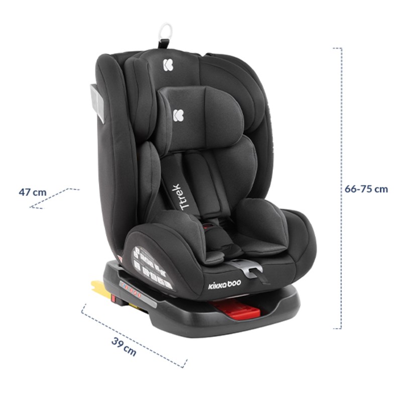 Kikka boo Ttrek Grupa 0+/1/2/3 0-36kg • Autosjedalica grupe 0+/1/2/3 odnosno 0-36kg; • Pogodna za postavljanje suprotno od smjera kretanja 0-18kg; • Pogodna za postavljanje u smjeru kretanja 9-36kg; • Podešavanje naslona sjedala u 5 položaja kada je autosjedalica postavljenja u smjeru suprotnom od kretanja, i u 5 položaja kada je postavljena u smjeru kretanja; • Rotacija autosjedalice za 360 stupnjeva; • SPS bočni sustav zaštite; • Isofix sustav za postavljanje autosjedalice; • Top tether za dodatnu sigurnost; • Mogućnost postavljanja autosjedalice pomoću sigurnosnog pojasa automobila; • Sustav sigurnosnog pojasa u 5 točaka sa jastučićima za ramena i obloženom dojnjom kopčom; • Podešavanje naslona za glavu u 8 položaja; • Mekani jastuci i mekana tkanina za udobnost djeteta i potporu cijelog tijela; • Dimenzije: 47x39x66-75cm; • Težina autosjedalice: 11.80 kg;