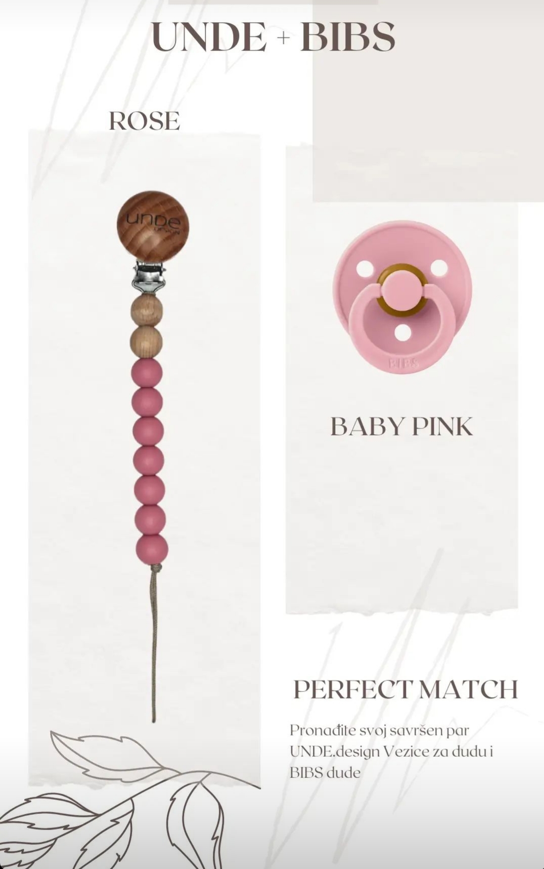 Silikonske kuglice napravljene su od 100% silikona koji se koristi u prehrambrenoj industriji,bez štetni sastojaka,bez mirisa,ftalata,BPA i olova. Drveni dodatci su od bukovog drveta prirodni i ekološki prihvatljivi,kopča je bez olova,a vezica je otporna na plijes . Dužina 25 cm.