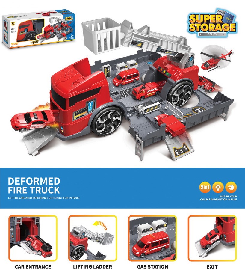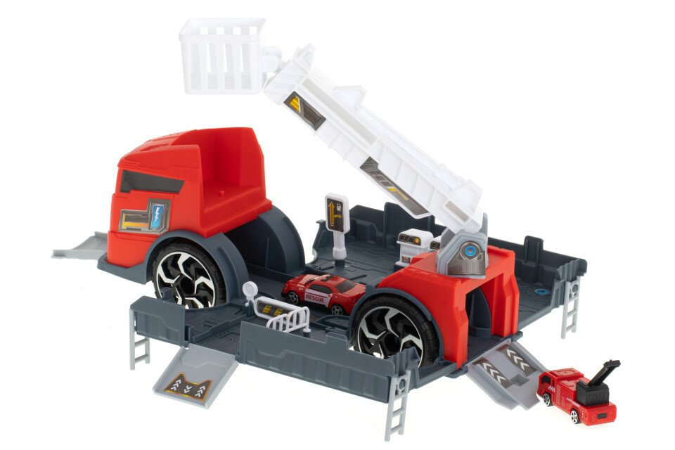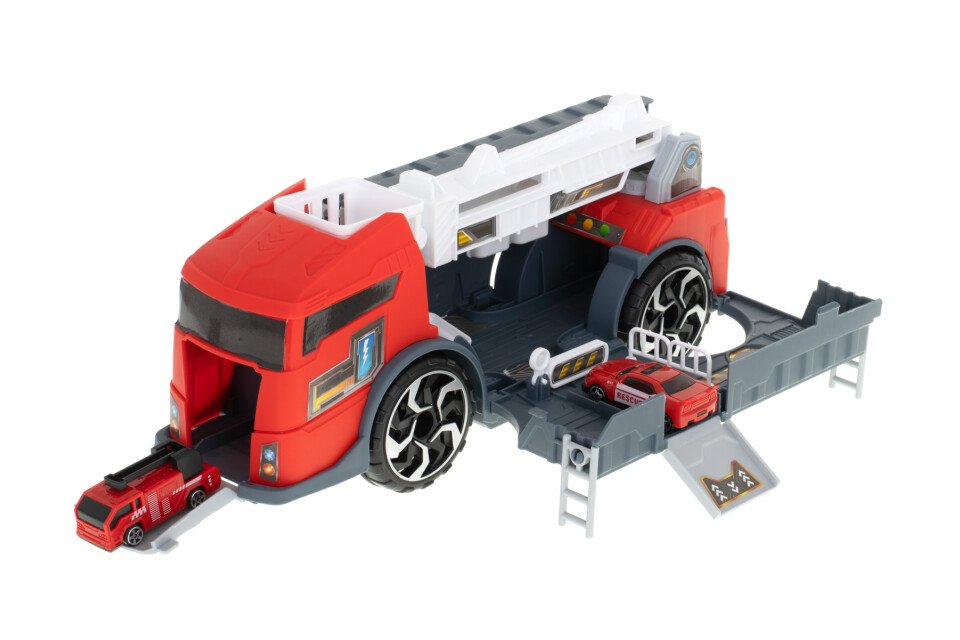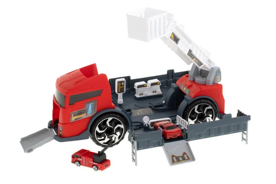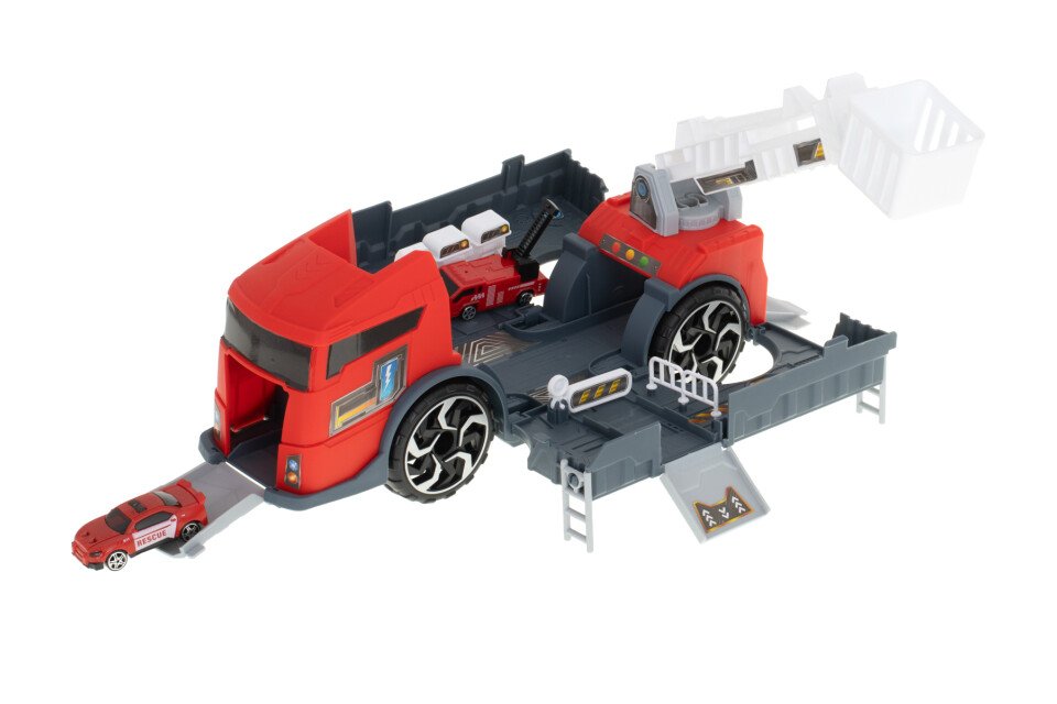 Kamion transporter 2 u 1 - parking vučna vatrogasna brigada + 3 crvena automobila