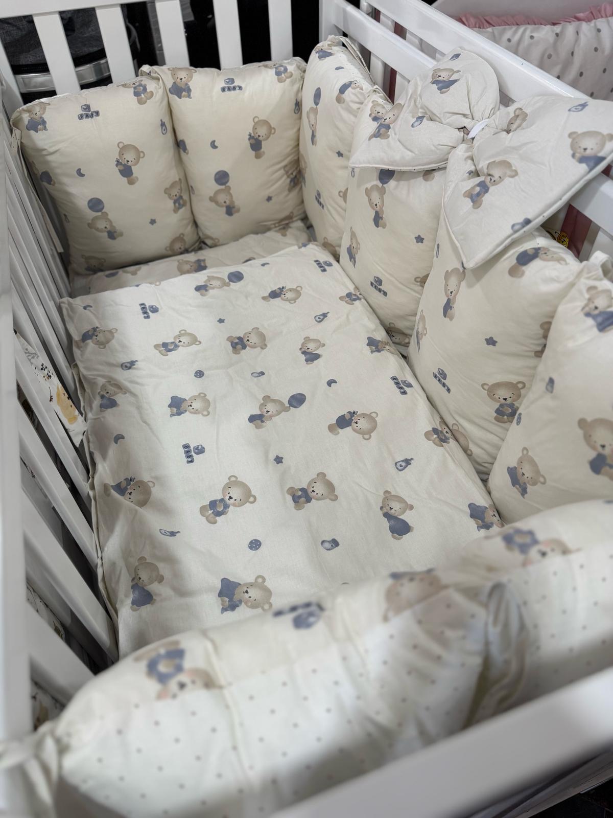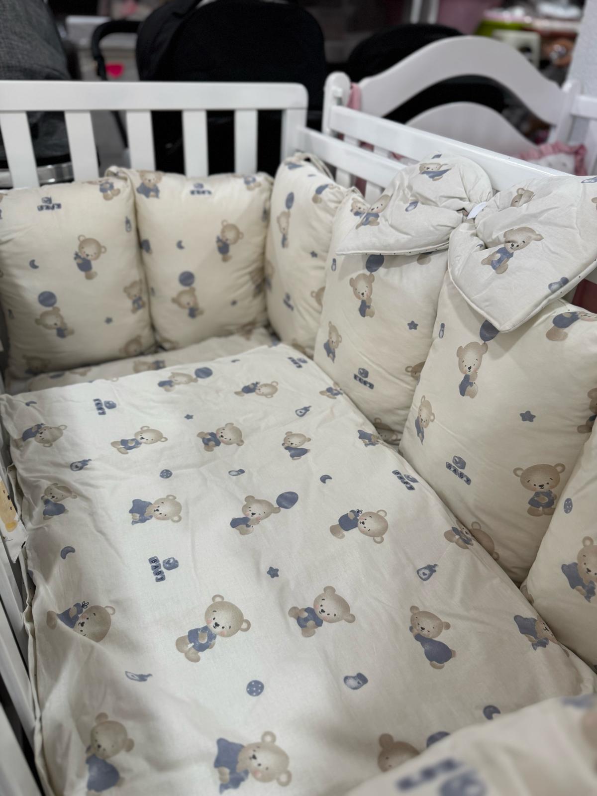 Posteljina set u dva lica Posteljina set u kojoj dolazi navlaka za madrac,jorgan i navlaka za jorgan,jastuk i ogradica za krevetac.