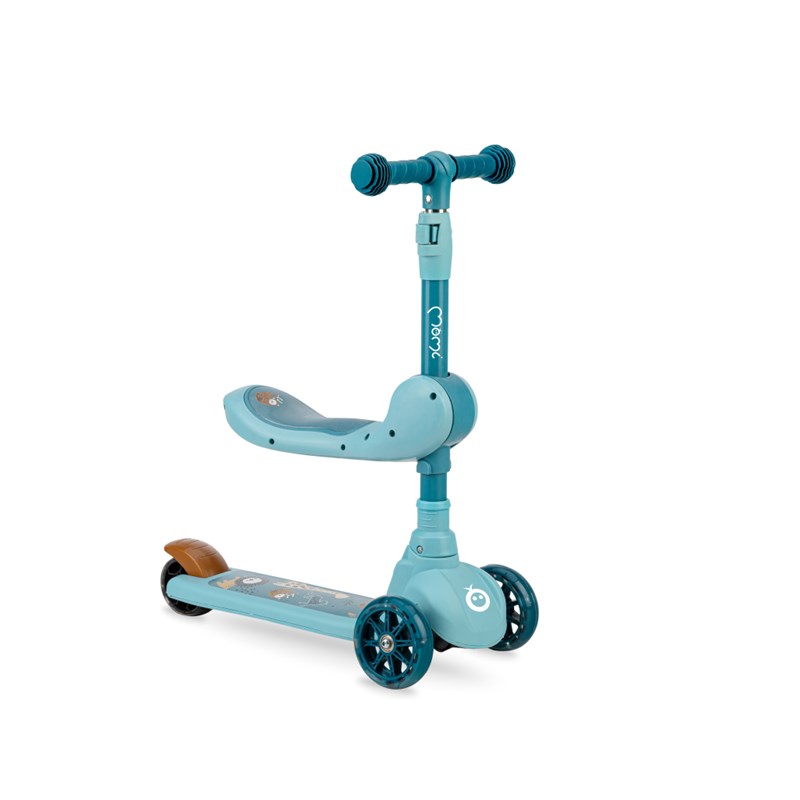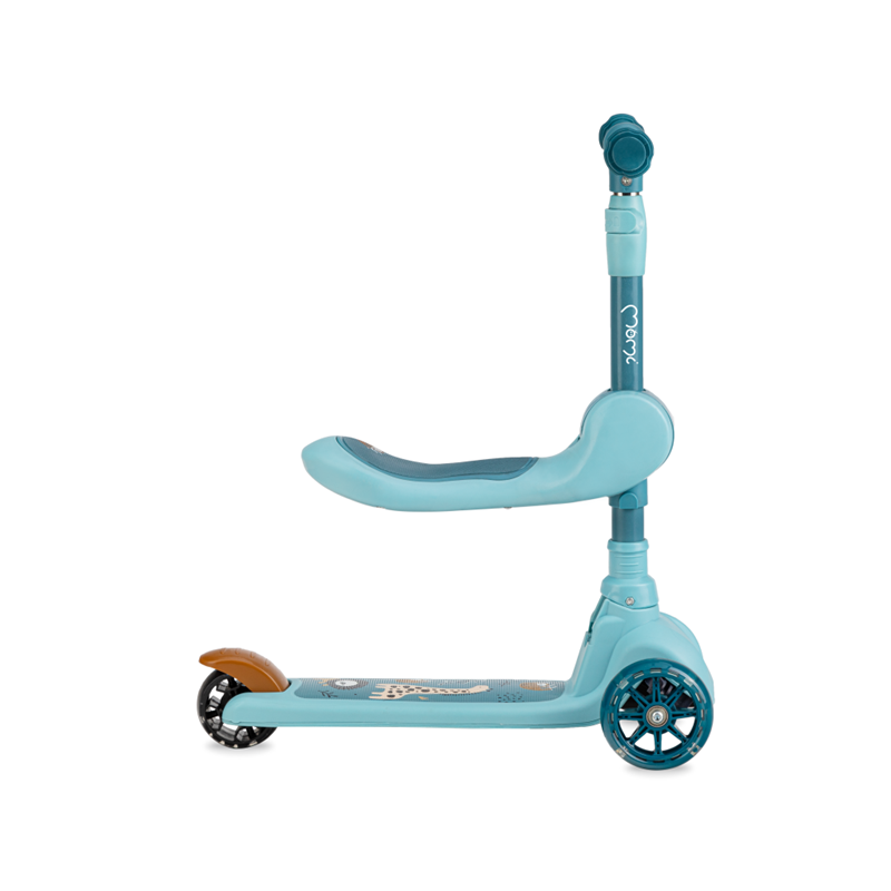 Romobil trotinet 2-u-1 MoMi KIURU Pitate se kakav romobil odabrati da bude prikladan za vaše dijete koje tek počinje činiti prve sportske korake? Najbolji prvi izbor bio bi MoMi KIURU romobil za ravnotežu, koji će vašem djetetu donijeti puno zabave, ali i pomoći u stjecanju samopouzdanja pokreta. Međutim, ako se mališan ne osjeća sigurnim na romobilu, možete koristiti romobil na drugačiji način kao guralicu! Značajke MoMi KIURU 2-u-1 romobila za ravnotežu: Lagan i izdržljiv dizajn; Funkcija ravnoteže; 2-u-1 - romobil i guralica Široko osvjetljeno gazište LED svjetla ugrađena u kotače Ugrađeni ABEC-7 ležajevi Upravljač podesiv u 3 položaja Funkcija sklapanja romobila Lagan - 2,3kg! Zadovoljava standarde: EN71-1, EN71-2, EN71-3 Dimenzije: 52x26x71cm Guralica do 25 kg Skuter do 50 kg Zašto je dobro odlučiti se za romobil MoMI KIURU? MoMi KIURU ima funkciju 2-u-1 - tako da dobro funkcionira i kao romobil za ravnotežu, ali i kao guralica za manju djecu. Sve što trebate učiniti je pomaknuti sjedalicu i romobil se pretvara u drugo vozilo na koje dijete može sjesti. 3-stupanjska prilagodba visine - MoMi brine o udobnosti i sigurnosti vašeg mališana, stoga je MoMi KIURU romobil dizajniran za podešavanje visine upravljača prema visini djeteta. Ugrađeni ABEC-7 ležajevi - izdržljivi su i pružit će vašem djetetu vrlo kvalitetnu vožnju. Zahvaljujući mogućnosti sklapanja bez napora, MoMi KIURU skuter se može jednostavno i kompaktno transportirati u automobilu. Široko osvijetljeno gazište prava je poslastica za male ljubitelje gadgeta. Ova atraktivnost zasigurno će zadovoljiti vaše dijete i učiniti ga još željnijim korištenja skutera! U kotače MoMi KIURU romobila ugrađena su LED svjetla koja svjetle sve više što vaš Mališan brže ide. Lakoća MoMi KIURU romobila učinit će vaše dijete sretnim.