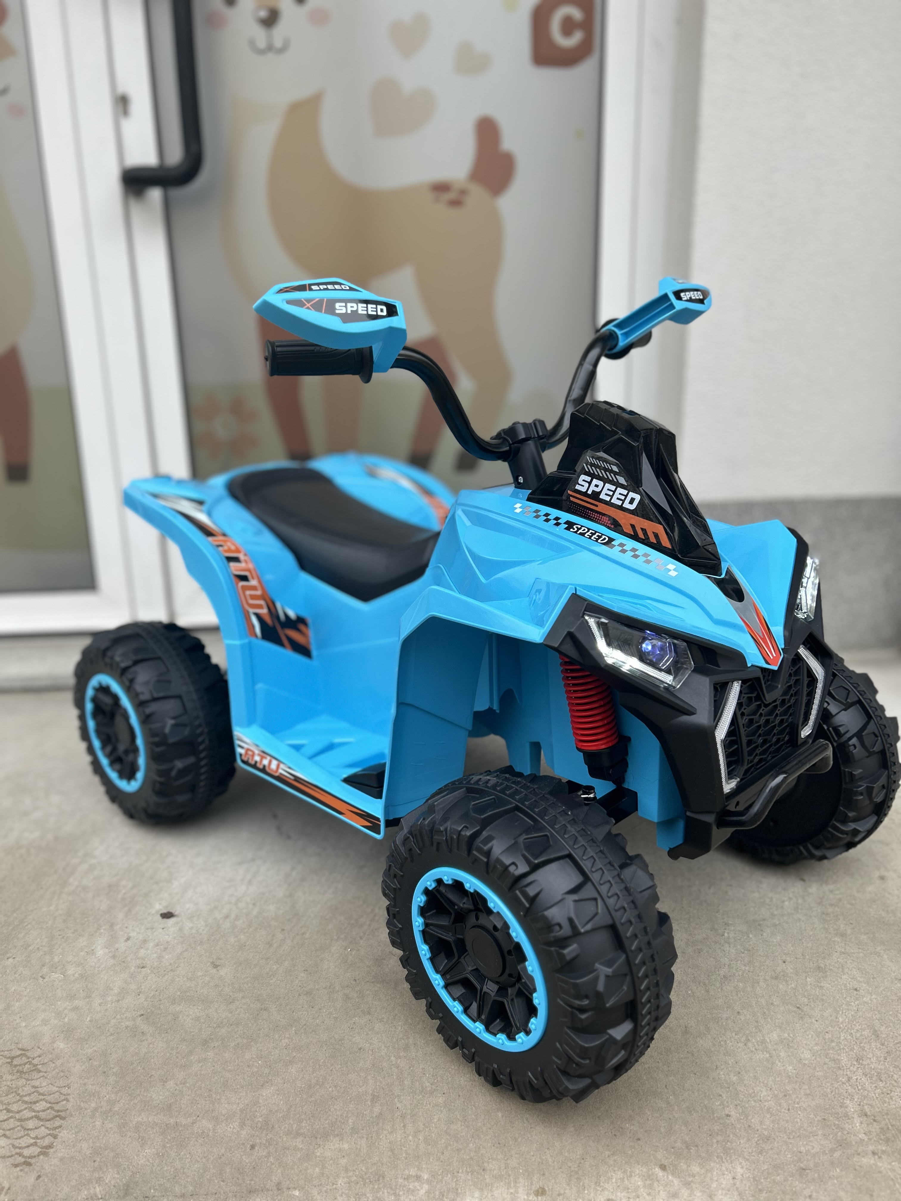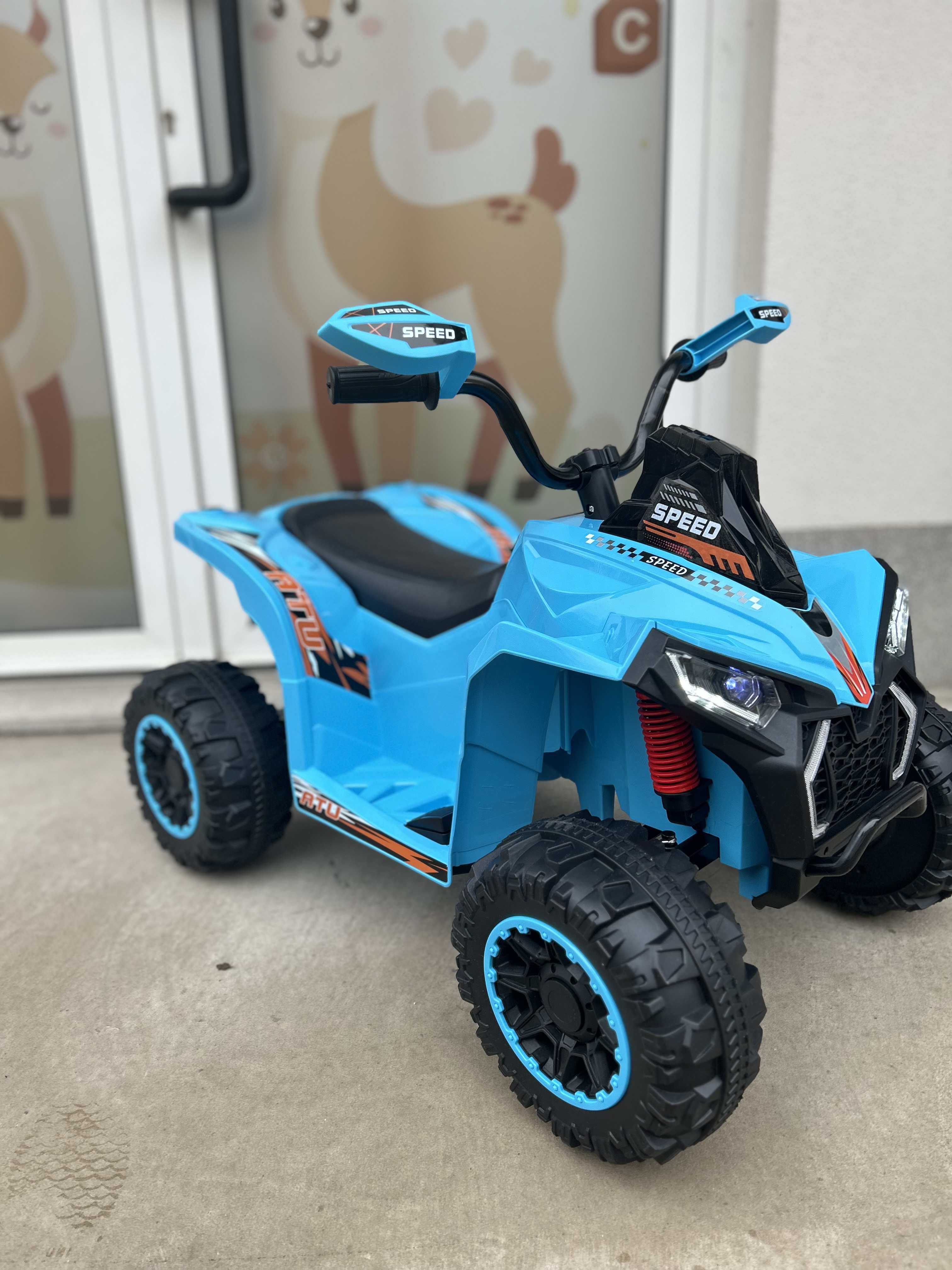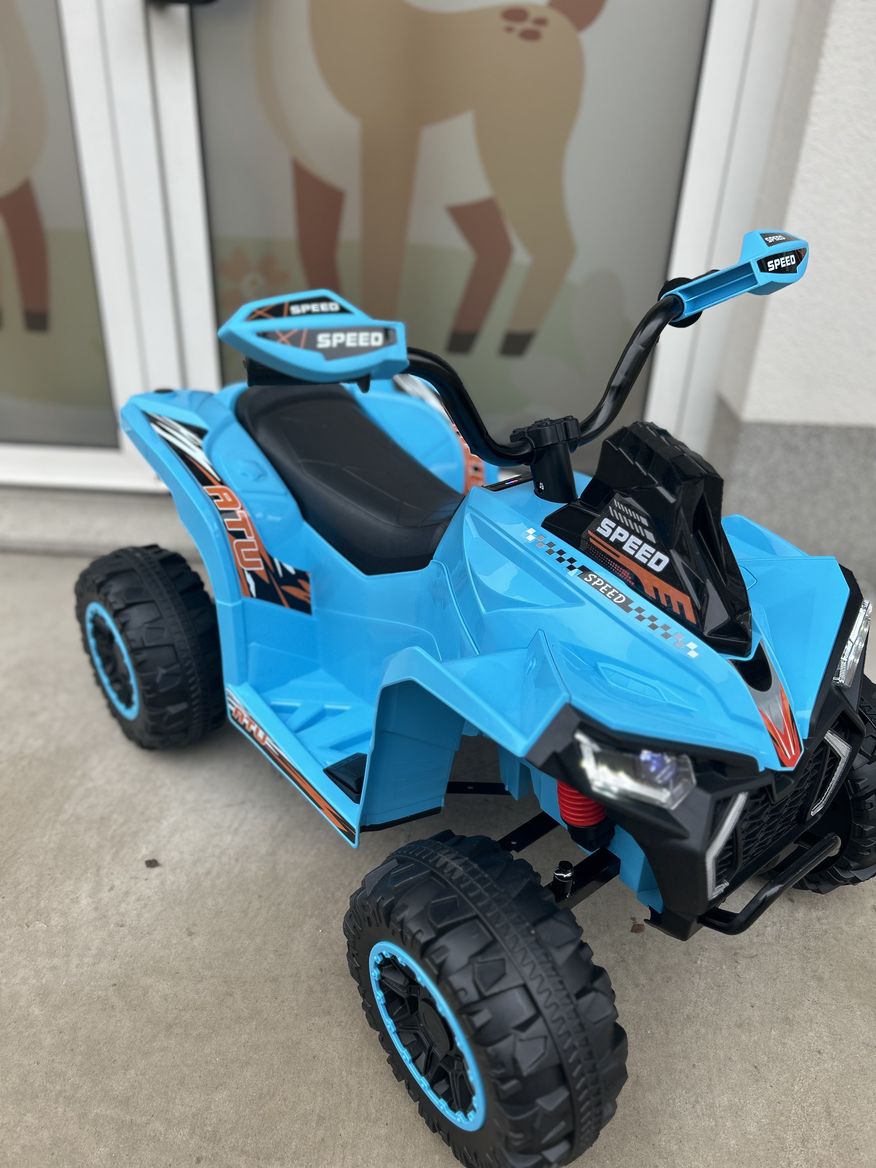 Dimenzije: 90x68x60cm, Karakteristike: Baterija 12V4.5Ah, 2 pogonska motorića 380 Muzika, Svjetla, USB utikač, Bluetooth povezivanje Max nosivost: 30 kg