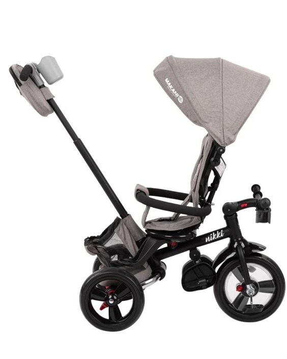 Nikki je triciklo koje raste sa Vašim djetetom. Njegove odlične karakteristike, te kvaliteta koja se vidi na prvi pogled, čini Nikki najboljim triciklom na tržištu. Ovo je triciklo koje ćete koristiti godinama i koje će ispuniti sva Vaša očekivanja. • Jedna od najboljih značajki Nikki tricikla je njegovo sklapanje; Sa par laganih poteza Nikki cete sklopiti i zauzimat ce tako malo mjesta da ga možete ponijet bilo gdje sa sobom; • Mogućnost okretanja sjedala u smjeru vožnje i prema roditelju; • Podešavanje naslona sjedala do poluležećeg položaja je jos jedna odlična značajka pogotovo dok ne dijete još malo i zaspi tokom vožnje; • Triciklo raste sa Vašim djetetom, tako da, zavisno od uzrasta djeteta skidate dio po dio; • Od tricikla sa naslonom, tendom i ručkom za roditelje,do tricikla koje dijete samostalno vozi; • Podešavanje visine ručke za roditelje u 3 položaja; • Velika tenda sa produžetkom za dodatnu zaštitu od sunca; • Sustav sigurnosnog pojasa u 3 točke sa jastučićima za ramena i obloženom dojnjom kopčom;  • Sklopivi naslon za noge; • Kočnica sa stražnjim kotačima; • Kvačilo, kočenje pedalama; • Blatobran na prednjem kotaču; • Kotači od EVA gume; • Prednje svjetlo sa 3 funkcije i sa zvukovima; • Držač za čašu; • Extra kvalitetna izrada; • Težina tricikla: 9.1 kg; • Dimenzije: 48x80x94-99 cm; • Testirano i odobreno po EN 71 Standardu