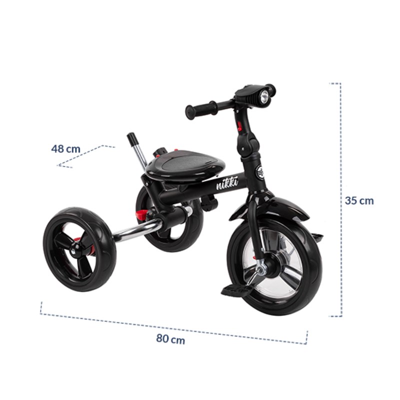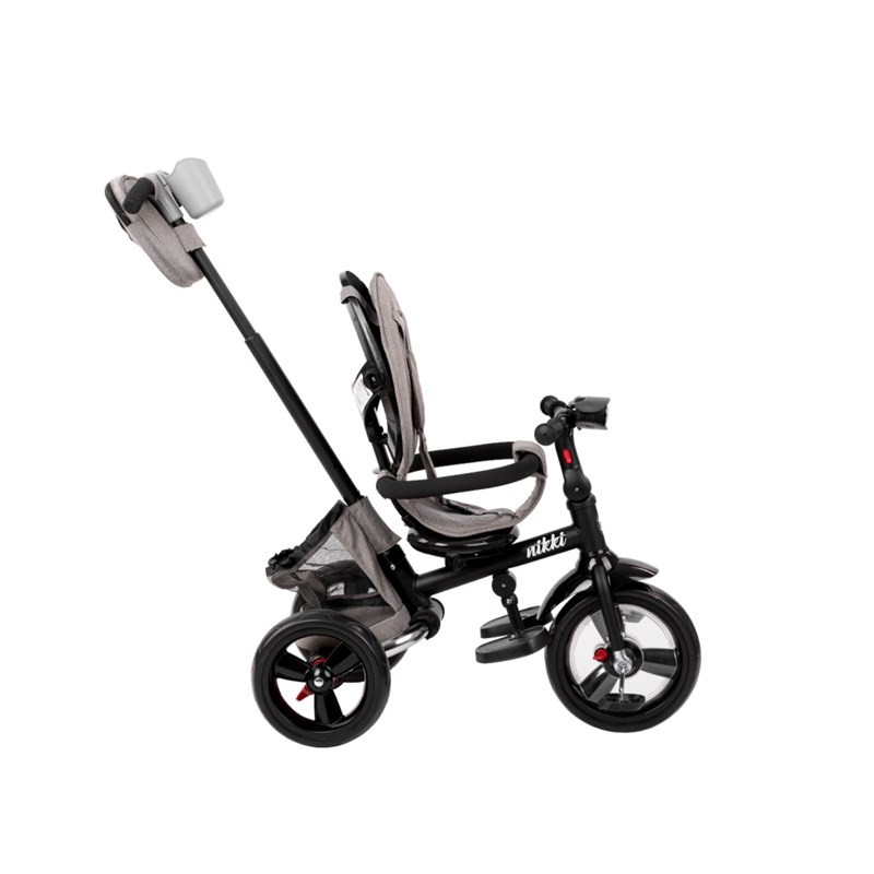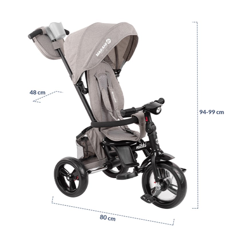 Kikka boo Nikki sklopivo triciklo 2020 Nikki je triciklo koje raste sa Vašim djetetom. Njegove odlične karakteristike, te kvaliteta koja se vidi na prvi pogled, čini Nikki najboljim triciklom na tržištu. Ovo je triciklo koje ćete koristiti godinama i koje će ispuniti sva Vaša očekivanja❤ • Jedna od najboljih značajki Nikki tricikla je njegovo sklapanje; Sa par laganih poteza Nikki cete sklopiti i zauzimat ce tako malo mjesta da ga možete ponijet bilo gdje sa sobom; • Mogućnost okretanja sjedala u smjeru vožnje i prema roditelju; • Podešavanje naslona sjedala do poluležećeg položaja je jos jedna odlična značajka pogotovo dok ne dijete još malo i zaspi tokom vožnje; • Triciklo raste sa Vašim djetetom, tako da, zavisno od uzrasta djeteta skidate dio po dio; • Od tricikla sa naslonom, tendom i ručkom za roditelje,do tricikla koje dijete samostalno vozi; • Podešavanje visine ručke za roditelje u 3 položaja; • Velika tenda sa produžetkom za dodatnu zaštitu od sunca; • Sustav sigurnosnog pojasa u 3 točke sa jastučićima za ramena i obloženom dojnjom kopčom; • Sklopivi naslon za noge; • Kočnica sa stražnjim kotačima; • Kvačilo, kočenje pedalama; • Blatobran na prednjem kotaču; • Kotači od EVA gume; • Prednje svjetlo sa 3 funkcije i sa zvukovima; • Držač za čašu; • Extra kvalitetna izrada; • Težina tricikla: 9.1 kg; • Dimenzije: 48x80x94-99 cm; • Testirano i odobreno po EN 71 Standardu;