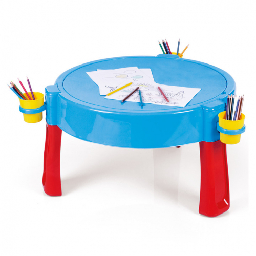 PJEŠČANIK/VODENICA/STOLIĆ za djecu Dolu je 3 u 1 aktivna igračka višenamjenskog dizajna. Ovaj sto za tri aktivnosti dolazi sa čak 3 šoljice za držanje bojica, vode ili igračaka. Visokokvalitetna plastika lako se briše i može trajati godinama. Za djecu uzrasta 2+ godina. Dimenzije: 77 × 98 × 98 cm.