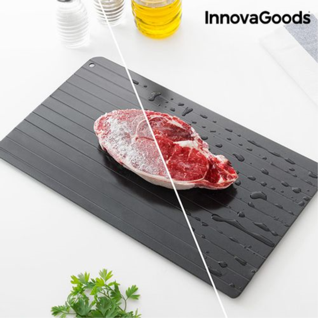 Inovativna ploča za odmrzavanje pobrinuti će se da hranu odmrznete u kraćem vremenu. Ploča od posebne metalne lugure ima visoku provodljivost topline i omogučuje odmrzavanje bez korištenja elektrike.