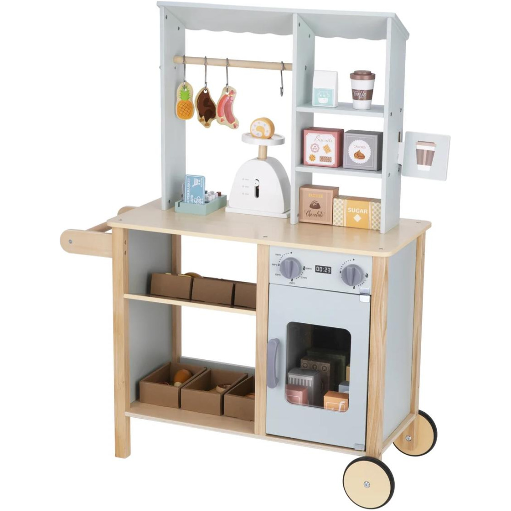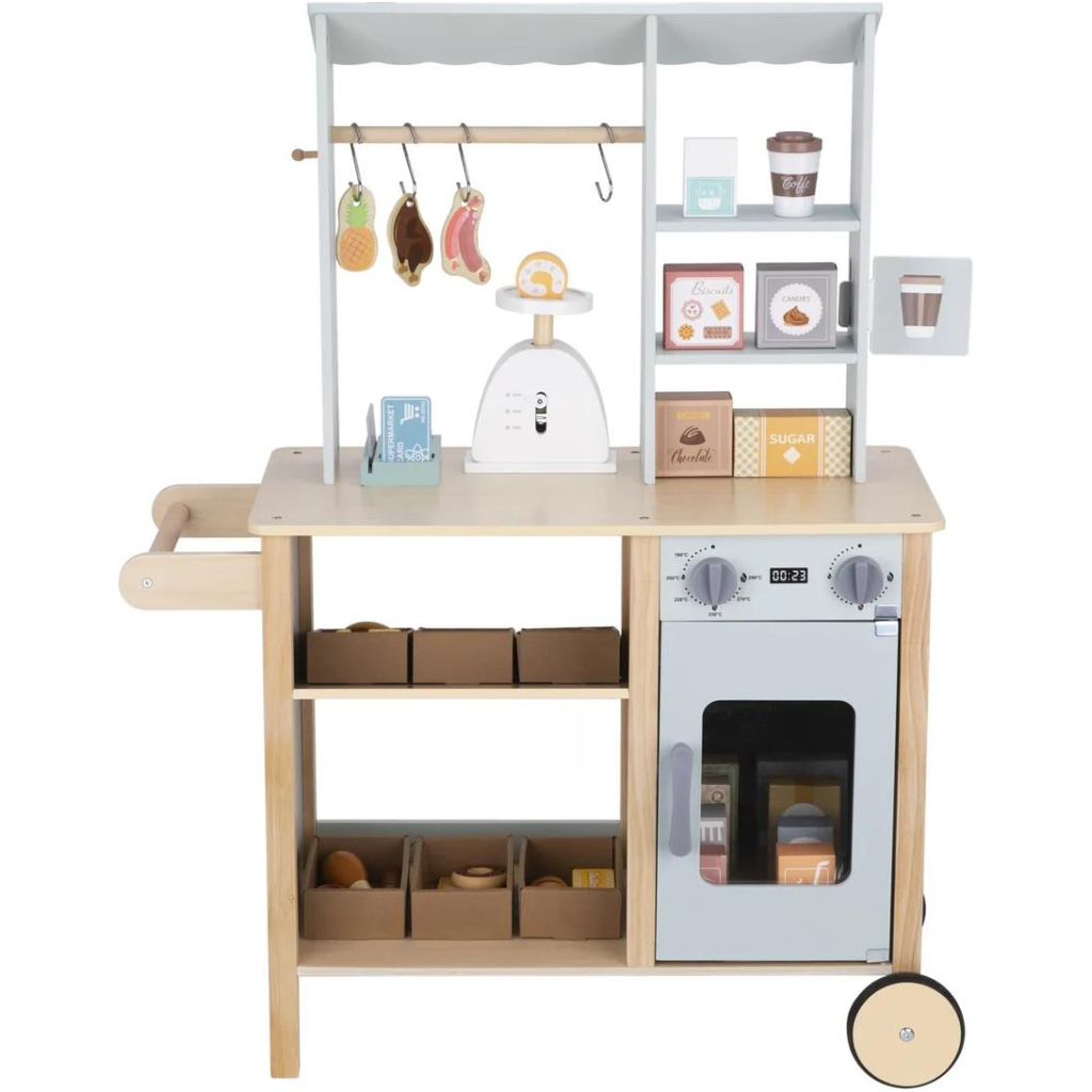 🛒✨ Drveni Market za djecu Savršen kutak za maštovitu igru malih prodavača i kupaca! Market dolazi s policama, vagom, blagajnom, visećim proizvodima i ladicama s voćem, povrćem i drugim namirnicama. ✅ Izrađen od kvalitetnog drveta ✅ Stabilan i siguran za igru ✅ Potiče maštu, socijalne i komunikacijske vještine ✅ Dolazi s bogatim setom dodataka 🎁 Idealan poklon za sate kreativne igre i učenje kroz zabavu!